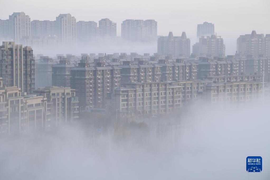 這是銀川上空的平流霧景觀(guān)(11月12日攝,無(wú)人機照片)。