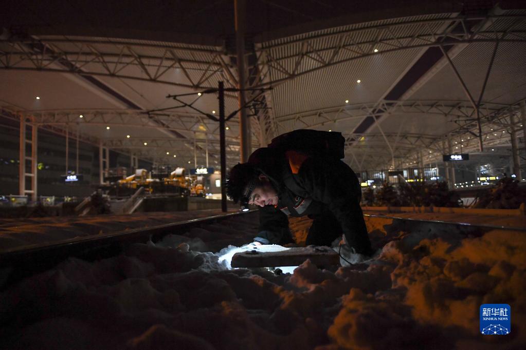 新華全媒+丨冬夜除冰雪 列車(chē)保安全