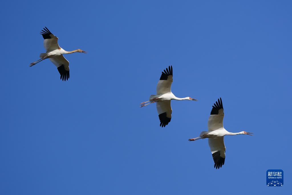 11月10日,白鶴在南昌高新區五星白鶴保護小區飛翔。