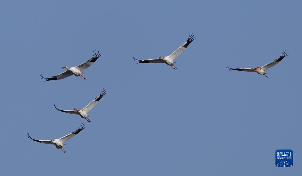 11月10日,白鶴在南昌高新區五星白鶴保護小區飛翔。