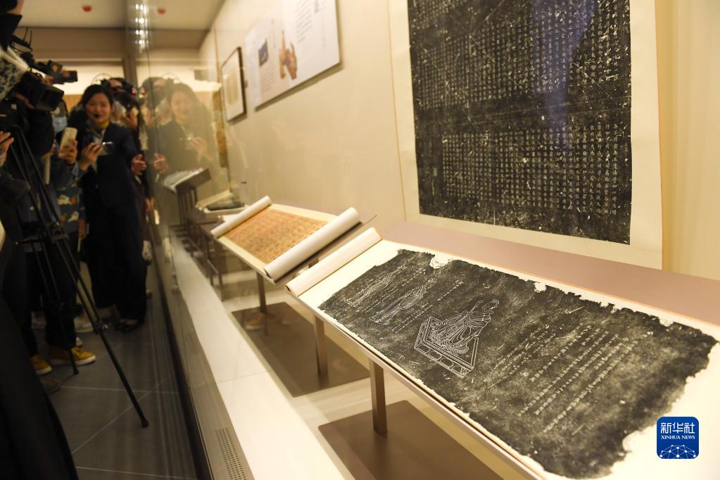 11月14日,講解員在介紹南宋德壽宮遺址博物館內展陳的南宋刻《孔子及七十二弟子像贊》石刻拓片。