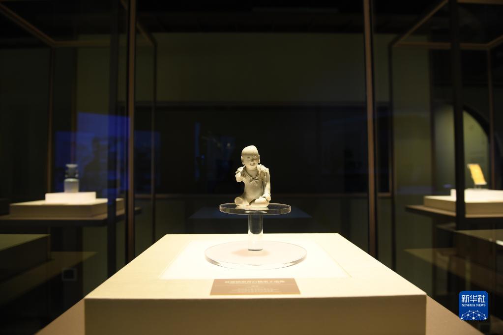 南宋德壽宮遺址博物館陳列的出土于杭州的青白瓷童子像(11月14日攝)。