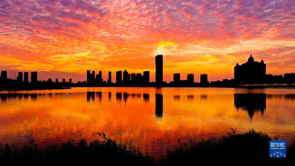 東營(yíng)市悅來(lái)湖晚霞(2021年9月1日攝)。