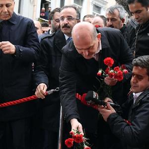 11月14日,土耳其內政部長(cháng)索伊盧在伊斯坦布爾市中心塔克西姆廣場(chǎng)邊的獨立大街爆炸現場(chǎng)接受媒體采訪(fǎng)。