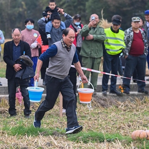 當日,浙江省杭州市余杭區瓶窯鎮13個(gè)村的近200位“勞動(dòng)能手”齊聚瓶窯鎮西安寺村,參加農民豐收趣味運動(dòng)會(huì ),包括扁擔挑糧、割稻谷、搶收土豆、剝玉米、運水抗旱等多個(gè)特色比賽項目。