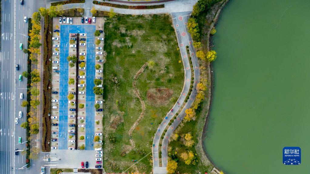 這是2022年11月1日拍攝的寧夏銀川市寶湖國家城市濕地公園一角(無(wú)人機照片)。