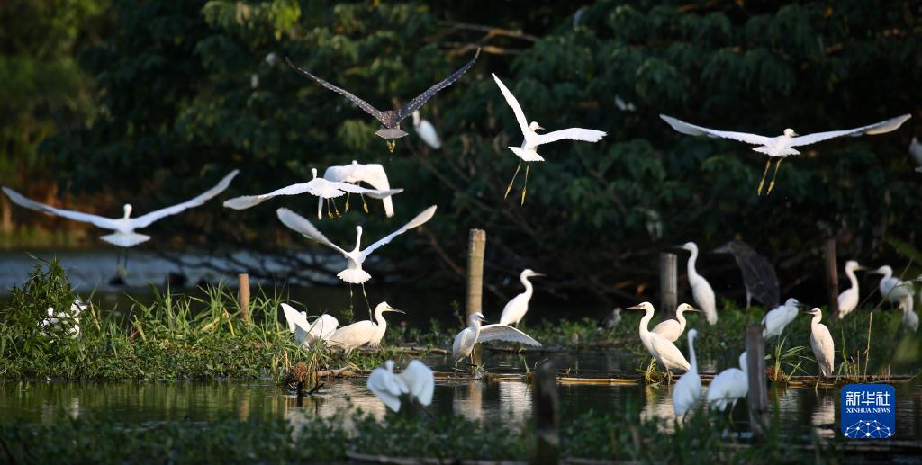 鷺鳥(niǎo)在沙家浜國家濕地公園棲息(資料照片)。 新華社發(fā)