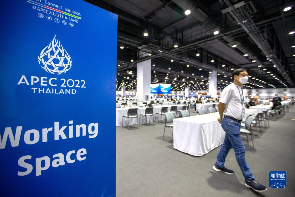 這是11月14日在泰國首都曼谷拍攝的APEC會(huì )議媒體中心。