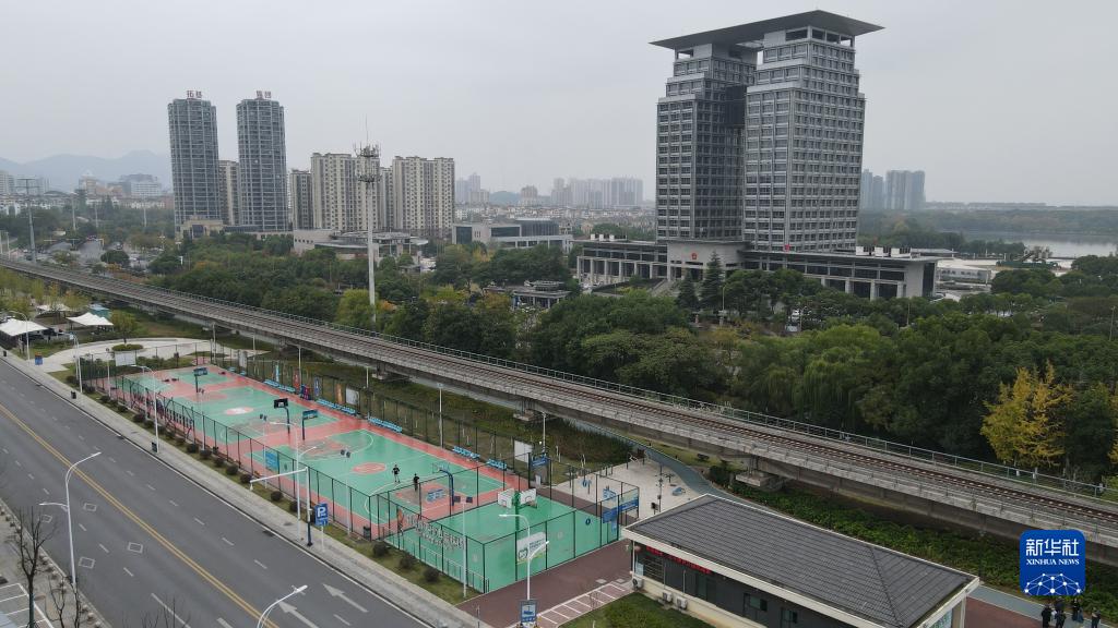 這是11月16日拍攝的銅陵市一處建設于鐵路橋附近的“口袋公園”(無(wú)人機照片)。