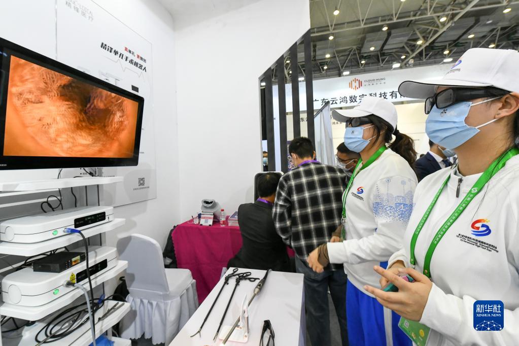 11月16日,在第十屆中國(綿陽(yáng))科技城國際科技博覽會(huì )上,志愿者佩戴特殊眼鏡觀(guān)看3D電子內窺鏡屏幕。