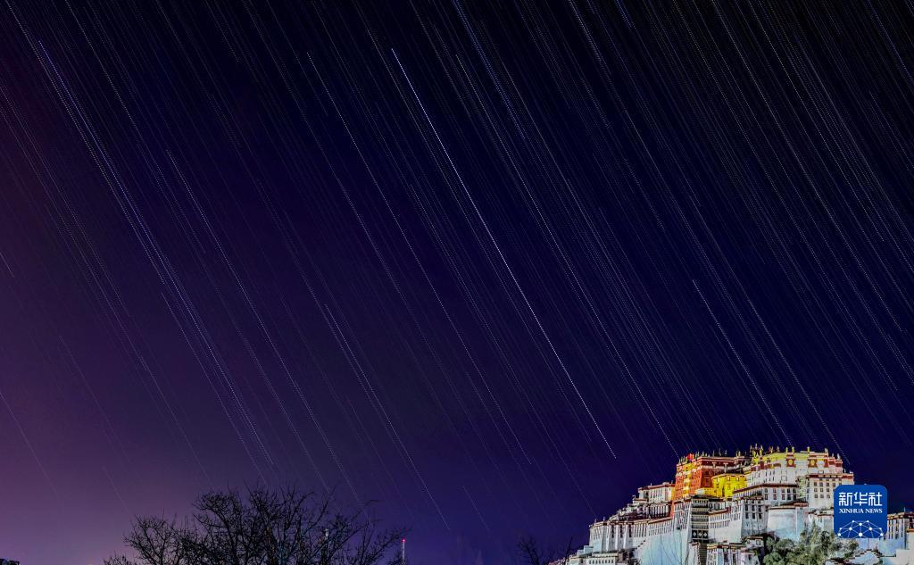這是在拉薩市區拍攝的以布達拉宮為前景的星軌照片(合成照片,11月16日攝)。