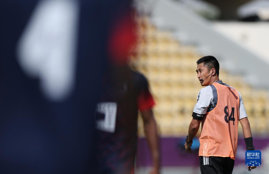 當日,入選2022年卡塔爾世界杯裁判員名單的中國裁判馬寧、曹奕與施翔在卡塔爾體育俱樂(lè )部球場(chǎng)進(jìn)行訓練。