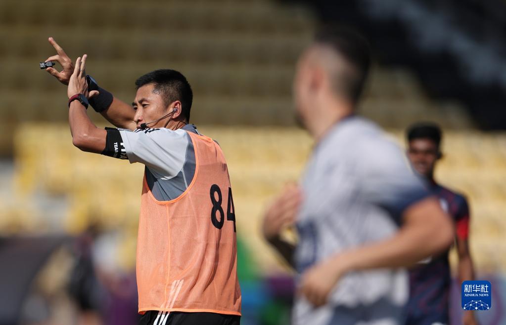 當日,入選2022年卡塔爾世界杯裁判員名單的中國裁判馬寧、曹奕與施翔在卡塔爾體育俱樂(lè )部球場(chǎng)進(jìn)行訓練。