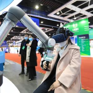 11月18日,人們在洽談會(huì )期間舉行的“綠色智造產(chǎn)業(yè)產(chǎn)品展”上參觀(guān)體驗康復機器人。