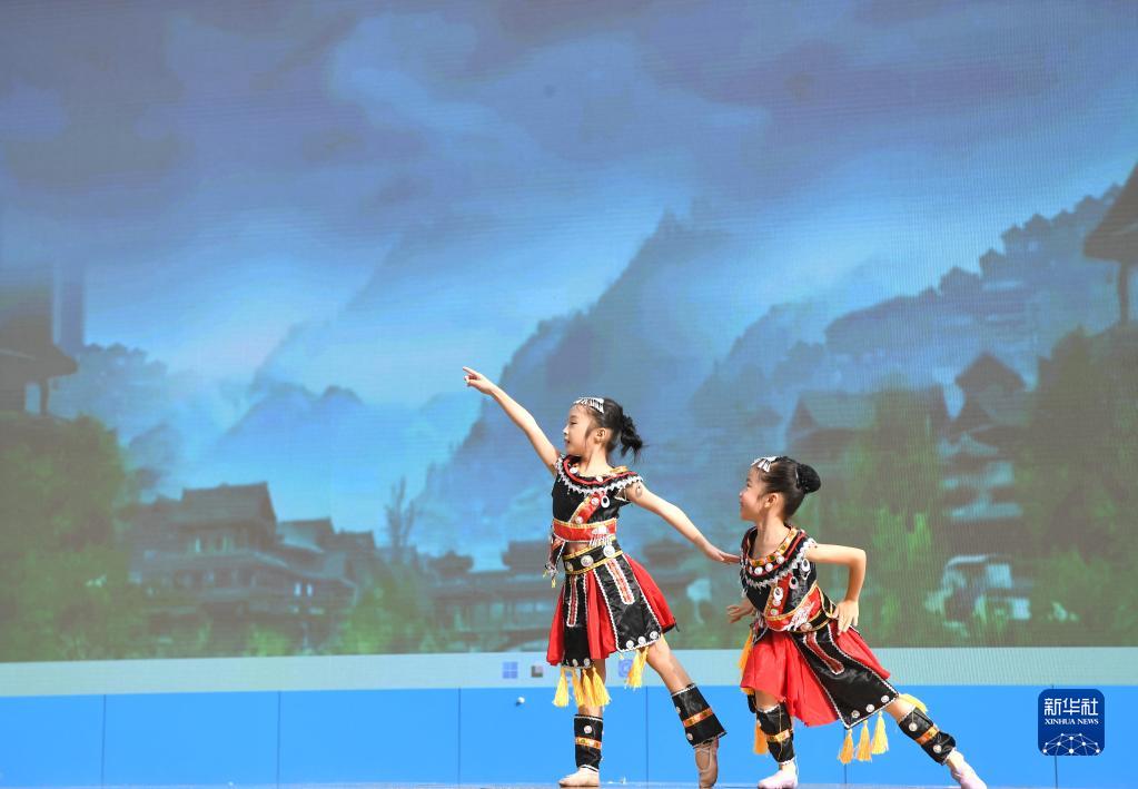 11月18日,兩名孩子在廣西南寧市濱湖路小學(xué)教育集團山語(yǔ)城校區表演舞蹈。