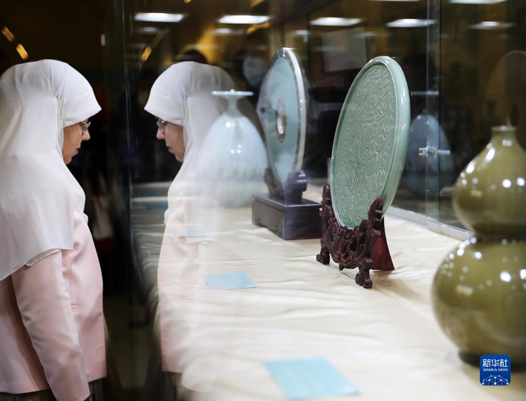 11月17日,觀(guān)眾在埃及首都開(kāi)羅穆罕默德·阿里宮博物館參觀(guān)浙江青瓷展。
