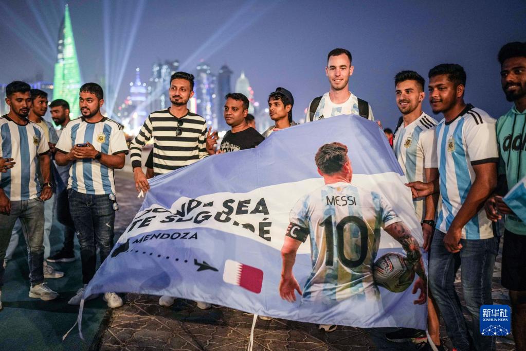 11月18日,球迷在濱海大道展開(kāi)繪有梅西的旗幟。