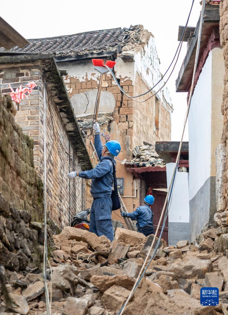 11月19日,在紅河縣浪堤鎮安品村,云南電網(wǎng)紅河縣供電局浪堤供電所工作人員在搶修受損電路。