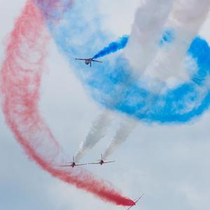 11月11日,空軍航空大學(xué)“紅鷹”飛行表演隊在第十四屆中國航展上進(jìn)行飛行表演。