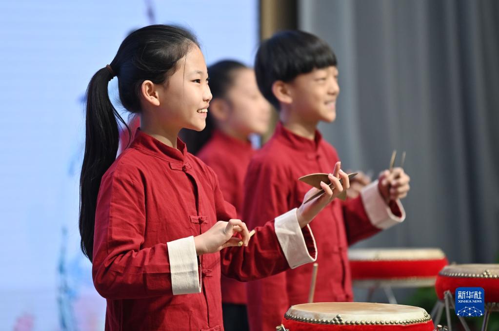 天津師范大學(xué)第三附屬小學(xué)的學(xué)生在練習京東大鼓(11月18日攝)。