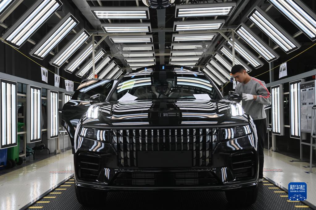 11月19日,工人在領(lǐng)克汽車(chē)寧波梅山工廠(chǎng)的總裝車(chē)間對即將下線(xiàn)的領(lǐng)克09汽車(chē)進(jìn)行檢驗。