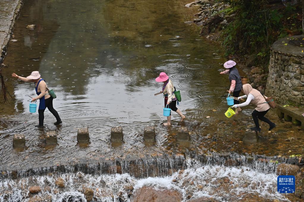 11月19日,在廣西融水苗族自治縣桿洞鄉黨鳩村,村民在河長(cháng)的組織下清理烏嘎河垃圾。