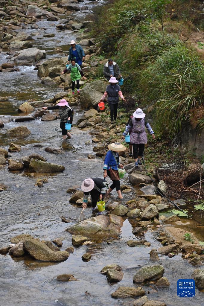 11月19日,在廣西融水苗族自治縣桿洞鄉黨鳩村,村民在河長(cháng)的組織下清理烏嘎河垃圾。