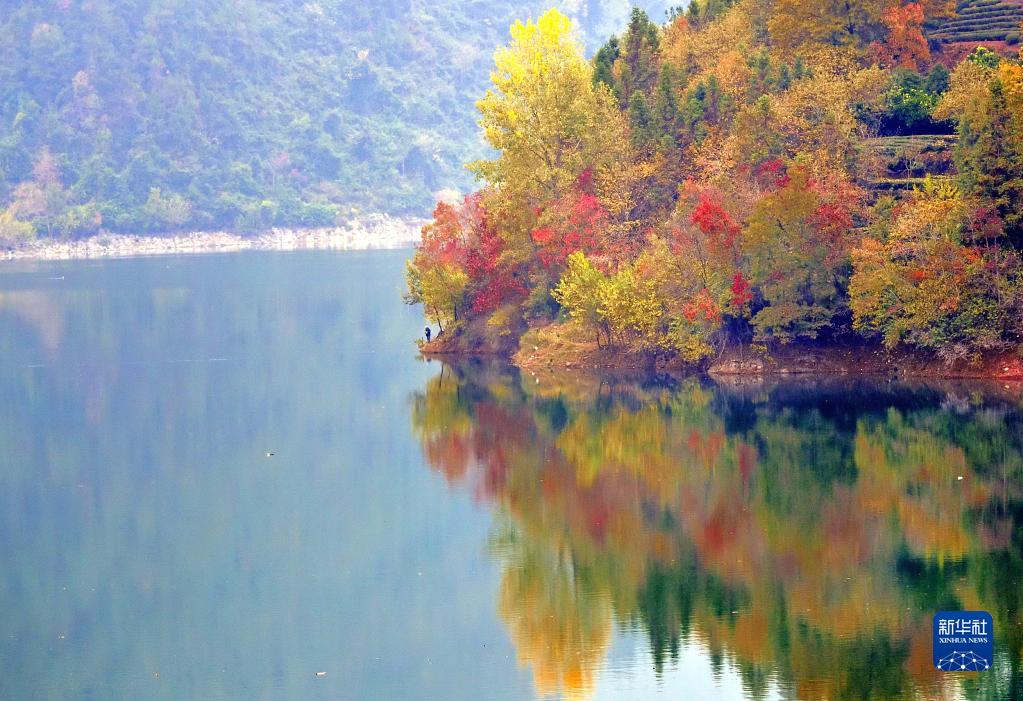 這是11月19日拍攝的湖北省宣恩縣珠山鎮雙龍湖畔景色。