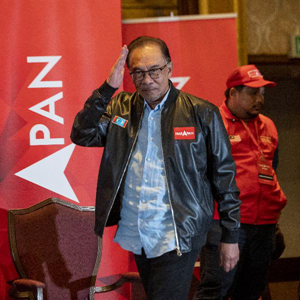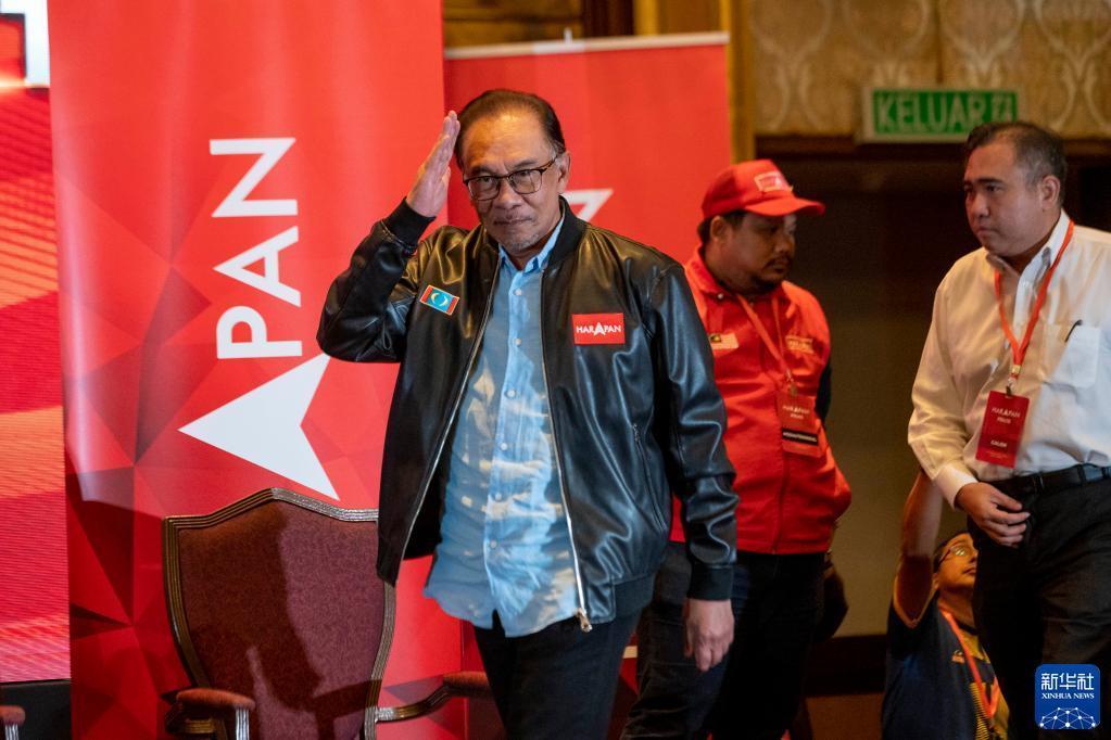 11月20日,在馬來(lái)西亞雪蘭莪州的梳邦再也,希望聯(lián)盟領(lǐng)袖安瓦爾(前)出席新聞發(fā)布會(huì )。