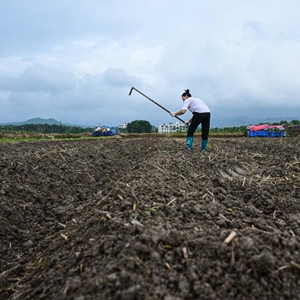 11月20日,在屯昌縣楓木鎮,農民為種植楓木苦瓜整備土地。