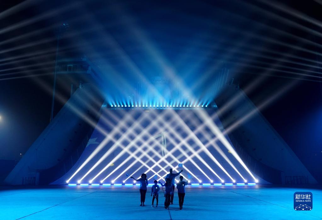 11月20日,北京首鋼滑雪大跳臺為世界兒童日亮燈。