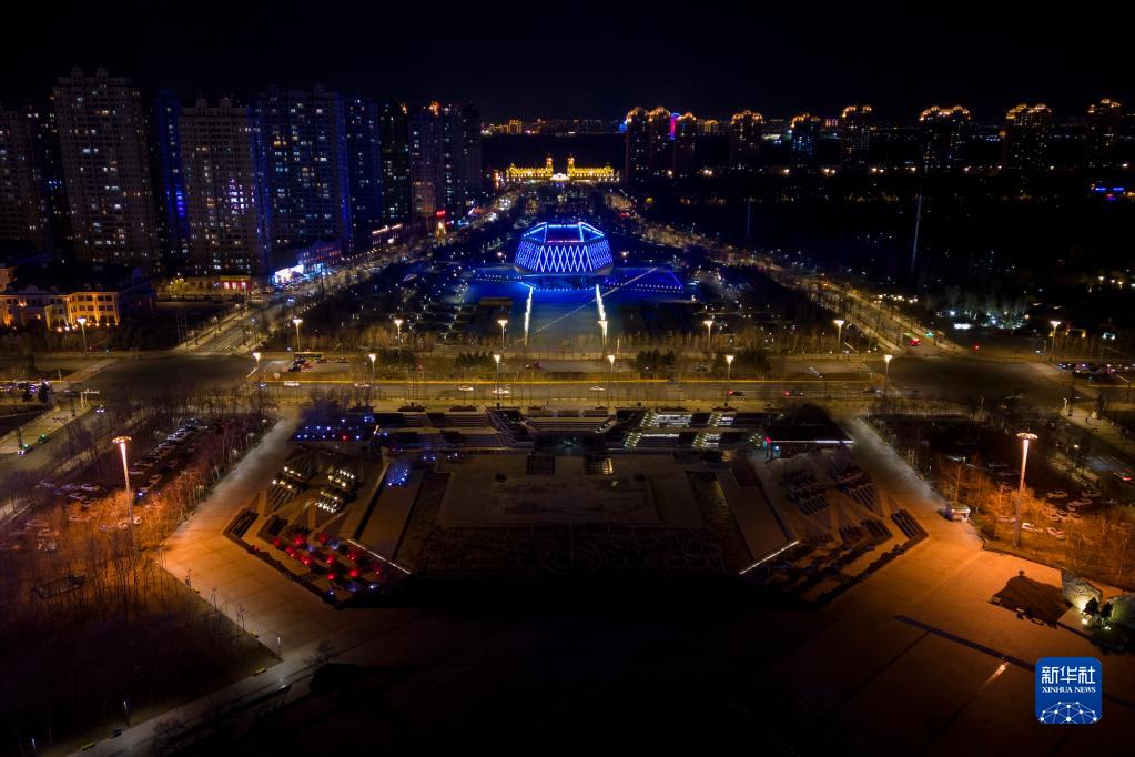 11月20日,哈爾濱音樂(lè )廳為世界兒童日亮燈(無(wú)人機照片)。