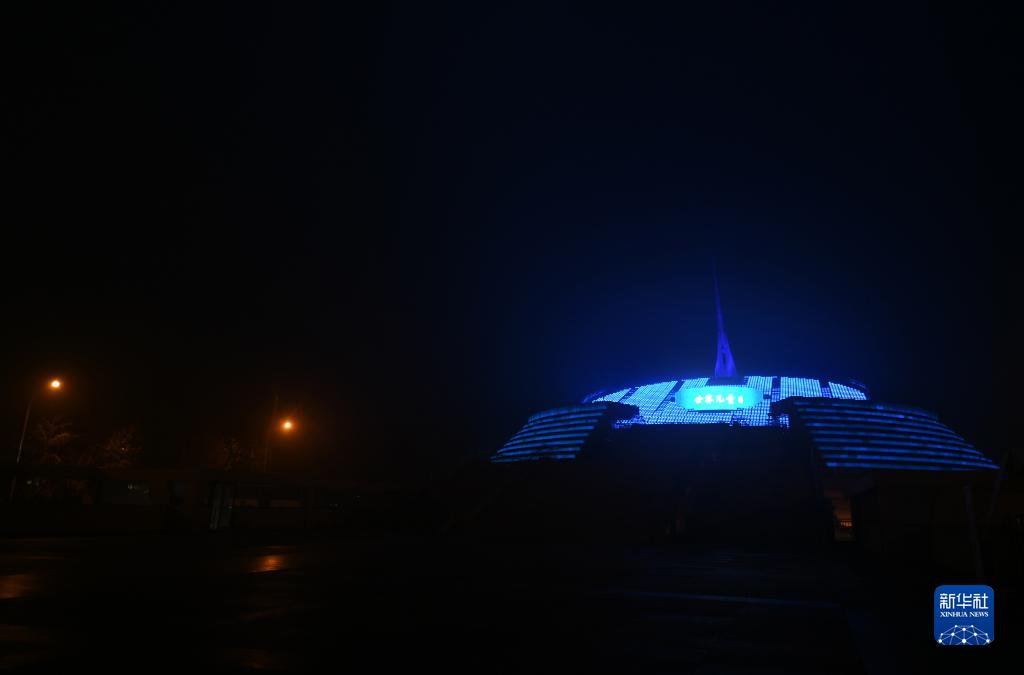 當日是世界兒童日,一些地區的地標建筑點(diǎn)亮象征兒童友好的藍色燈光。