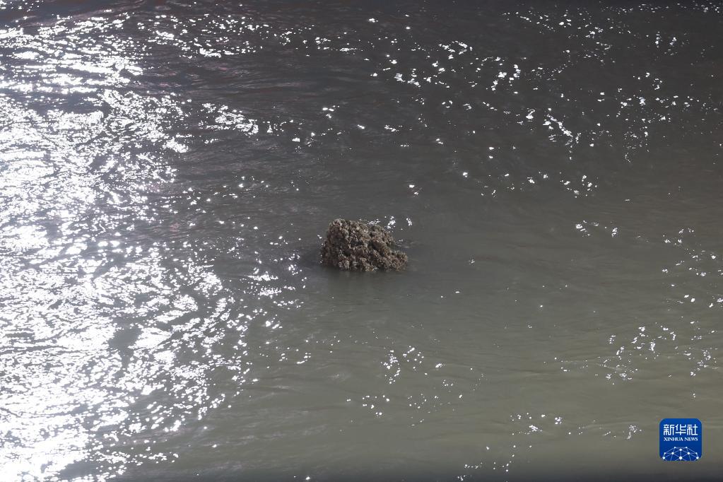 11月21日拍攝的長(cháng)江口二號古船桅桿出水畫(huà)面。