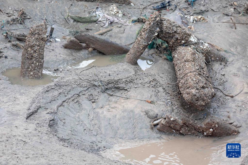 11月21日清晨拍攝的長(cháng)江口二號古船船體局部。