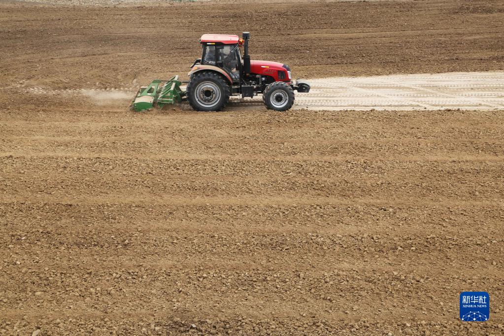 11月21日,農機手駕駛農機在甘肅省定西市安定區內官營(yíng)鎮翻地松土。