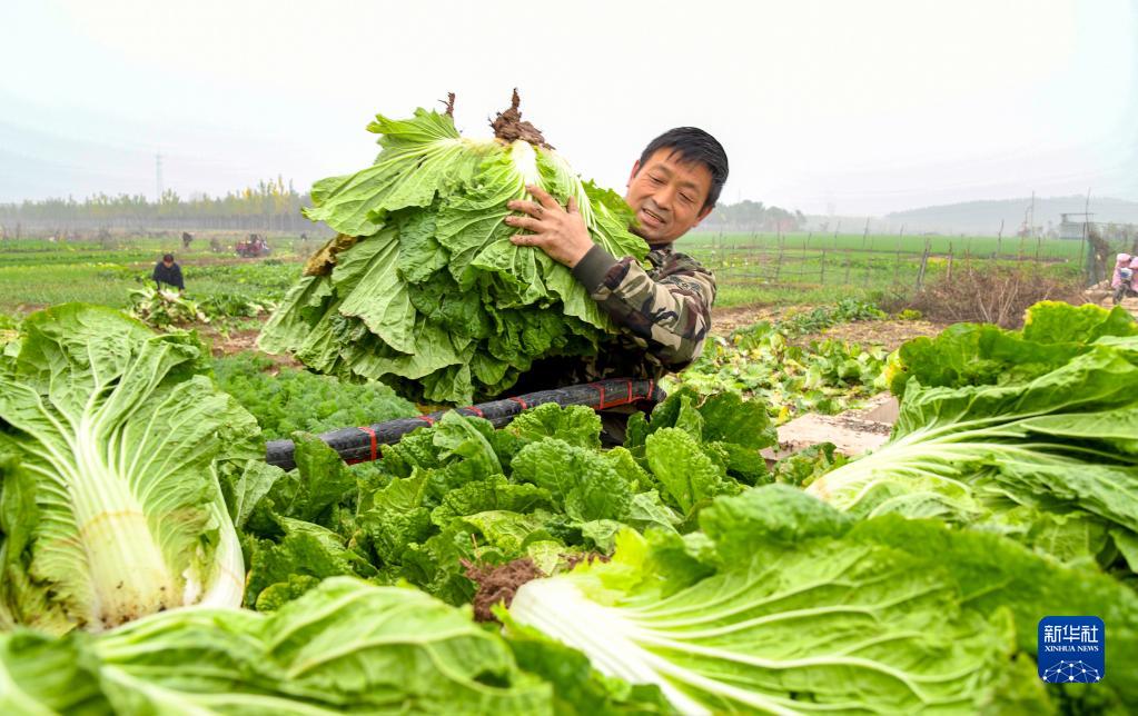 11月20日,河南省濟源市克井鎮逢南村農民在收獲白菜。