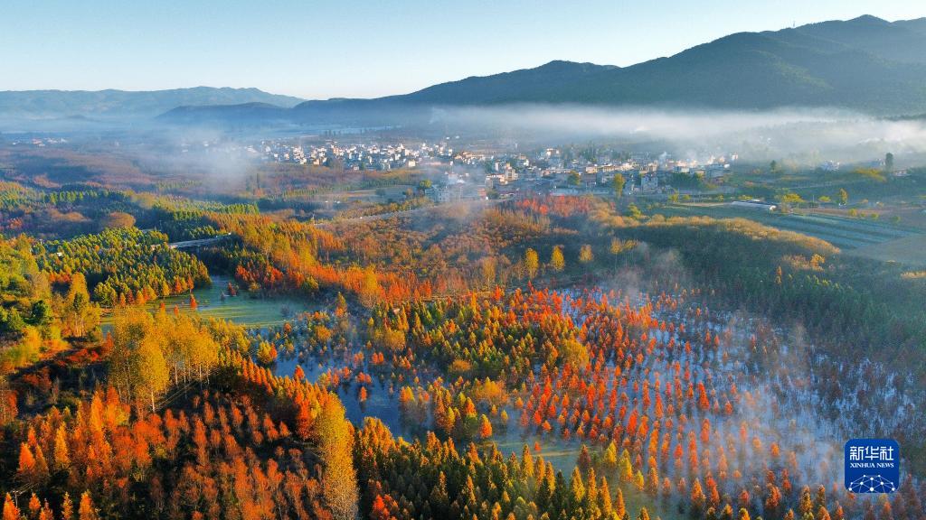 近日,云南省昆明市盤(pán)龍區滇源街道甸尾村水杉濕地的水杉林色彩艷麗,景色如畫(huà)。