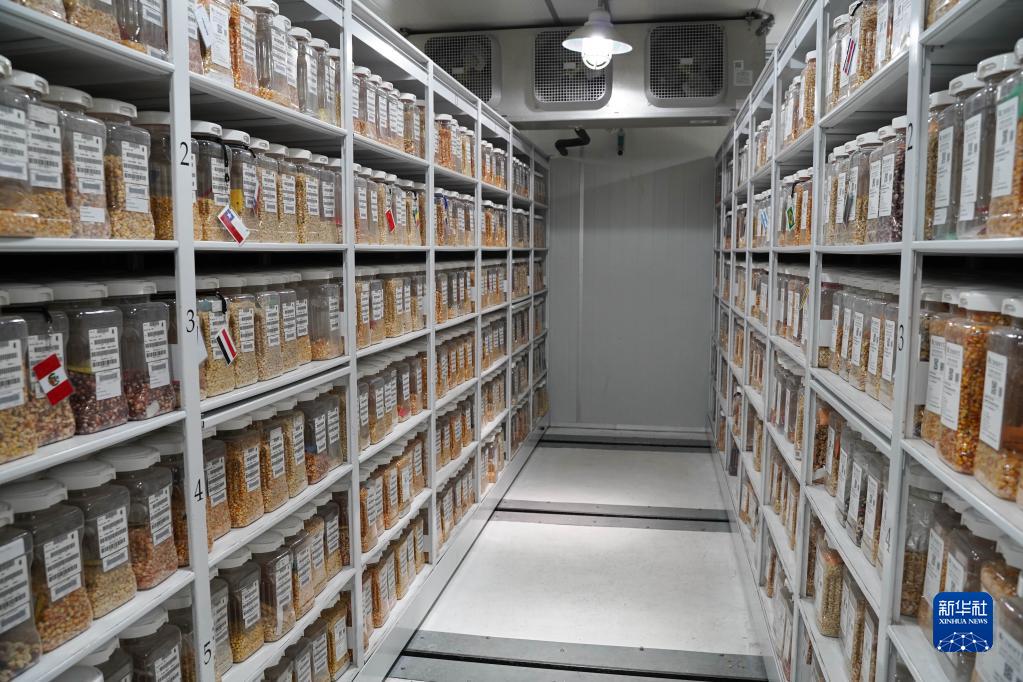 這是11月7日在墨西哥特斯科科郊外國際玉米小麥改良中心拍攝的“種質(zhì)銀行”內部。在國際玉米小麥改良中心內有一座“種質(zhì)銀行”,在兩扇厚重的隔溫門(mén)后,冷庫里儲存著(zhù)超過(guò)15萬(wàn)種小麥種質(zhì)、超過(guò)2.8萬(wàn)種玉米種質(zhì)資源。