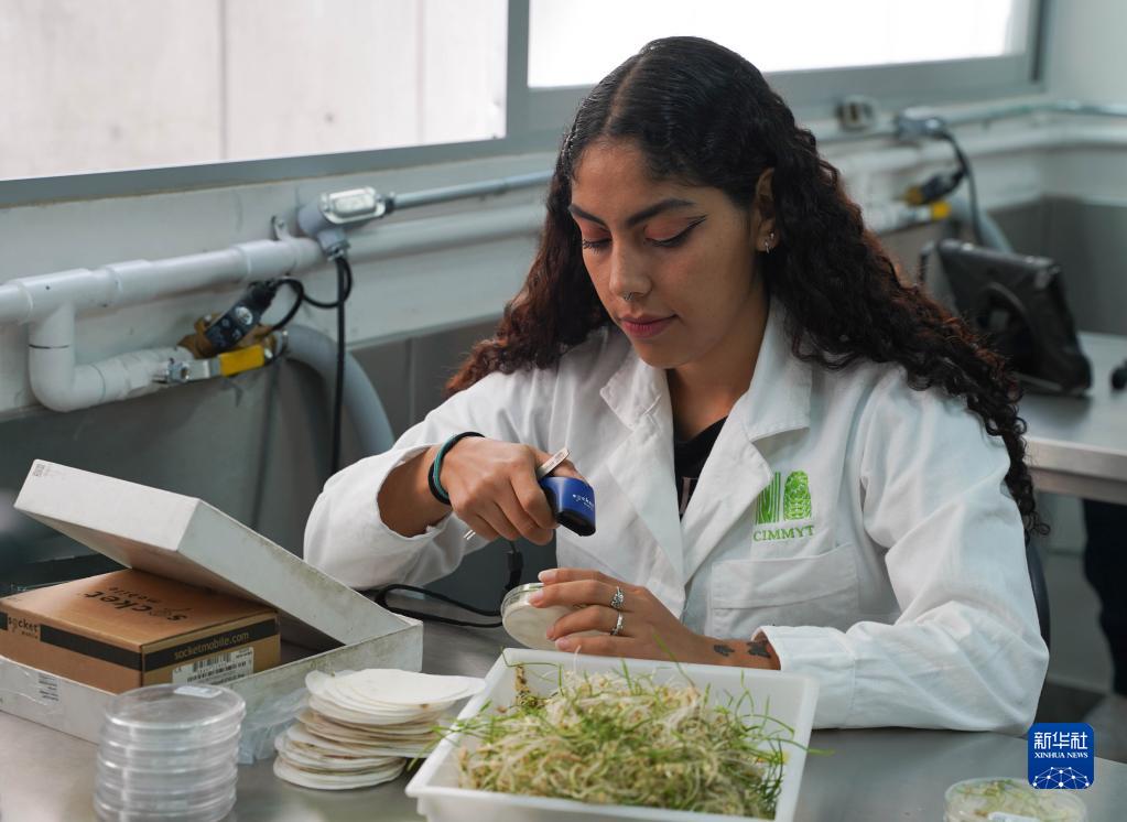 11月7日,一位研究人員在墨西哥特斯科科郊外國際玉米小麥改良中心做實(shí)驗。