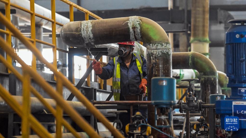 11月21日,在廣西中偉新能源科技有限公司生產(chǎn)車(chē)間,一名老黨員在作業(yè)中。