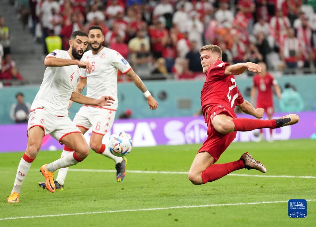 當日,在卡塔爾賴(lài)揚教育城球場(chǎng)進(jìn)行的2022卡塔爾世界杯足球賽D組比賽中,丹麥隊以0比0戰平突尼斯隊。