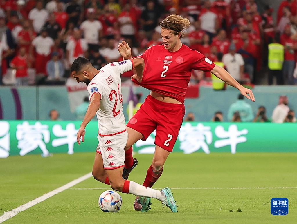 當日,在卡塔爾賴(lài)揚教育城球場(chǎng)進(jìn)行的2022卡塔爾世界杯足球賽D組比賽中,丹麥隊以0比0戰平突尼斯隊。
