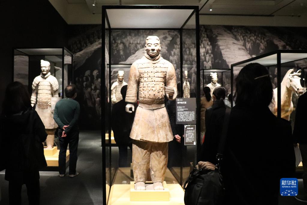 11月21日,參觀(guān)者在日本東京上野之森美術(shù)館《兵馬俑與古代中國——秦漢文明的遺產(chǎn)》大型文物展媒體預展上參觀(guān)。