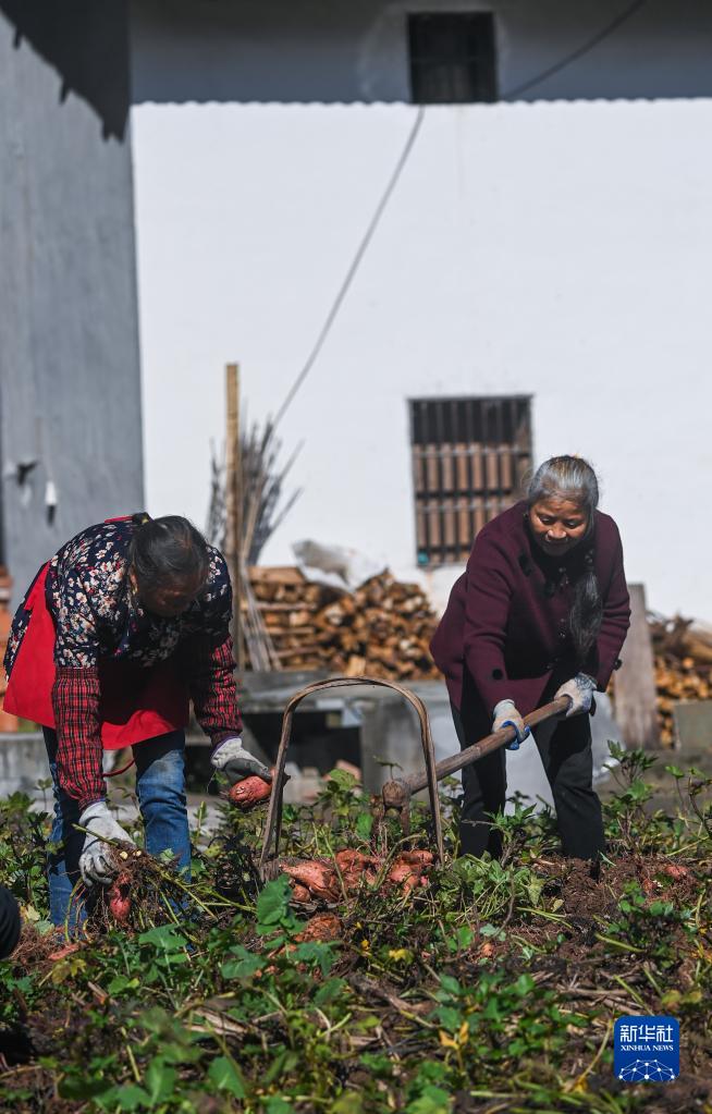 11月23日,浙江省建德市更樓街道橋嶺村的村民在收獲地瓜。