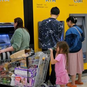 11月21日,人們在新西蘭最大城市奧克蘭的一處自動(dòng)提款機前等待取款。