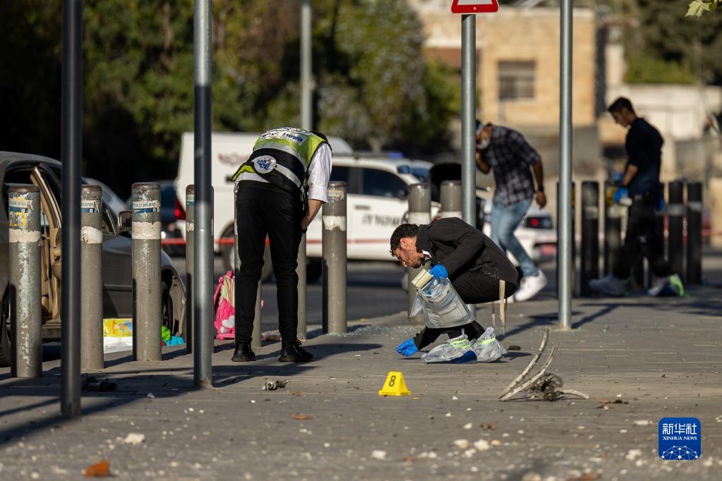 這是11月23日在耶路撒冷拍攝的爆炸現場(chǎng)。