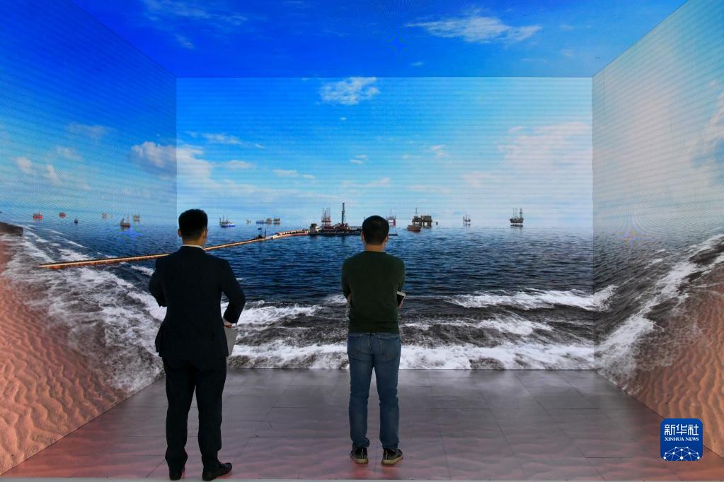 11月24日,觀(guān)眾在海博會(huì )現場(chǎng)體驗“海洋油氣勘探開(kāi)發(fā)全景漫游”。