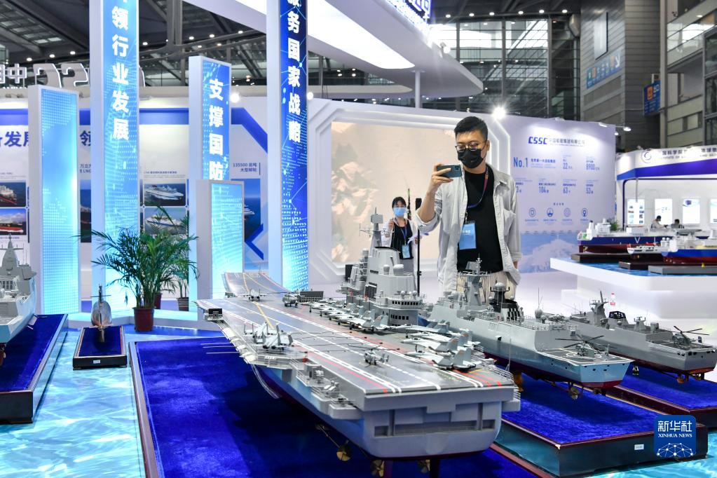 11月24日,觀(guān)眾在海博會(huì )現場(chǎng)觀(guān)看中國船舶集團展出的船只模型。