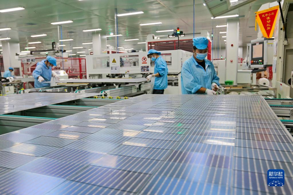 11月24日,在淮北市烈山經(jīng)濟開(kāi)發(fā)區一家光伏面板生產(chǎn)企業(yè)車(chē)間,工人在生產(chǎn)線(xiàn)上忙碌。